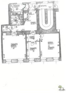 Von diesem kleinen Vorraum aus ist auch das dritte Zimmer mit ca. 21 m² erreichbar. Dieser Grundriss der Wohnung ermöglicht, dass alle Räume separat zugänglich sind und eignet sich hiermit auch sehr gut für eine Wohngemeinschaft.