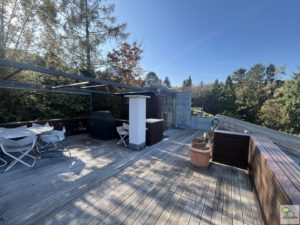 Im Erdgeschoss des Hauses finden Sie einen geräumigen Vorraum , eine kleine moderne Küche , ein Badezimmer mit Badewanne ,ein WC mit Waschbecken , drei kleinere Zimmer und ein großes Wohnzimmer mit direkten Ausgang auf die Terrasse. Im exklusiven Obergeschoss befindet sich ein weiters Badezimmer mit einer Duschbadewanne , WC und Waschbecken. Weiters findet man hier ein stielvolles Schlafzimmer mit Garderobe und ein Kinderzimmer. Das sehr freundliche und großzügige Wohnzimmer mit der Küche befindet sich ebenfalls auf dieser Ebene. Der absolute Traum ist die große Dachterrasse , die nicht nur über eine moderne Sauna verfügt , sondern auch viel Platz zum chillen bietet. Der Ausblick ist atemberaubend und Ihre Gäste werden voller Neid erblassen.