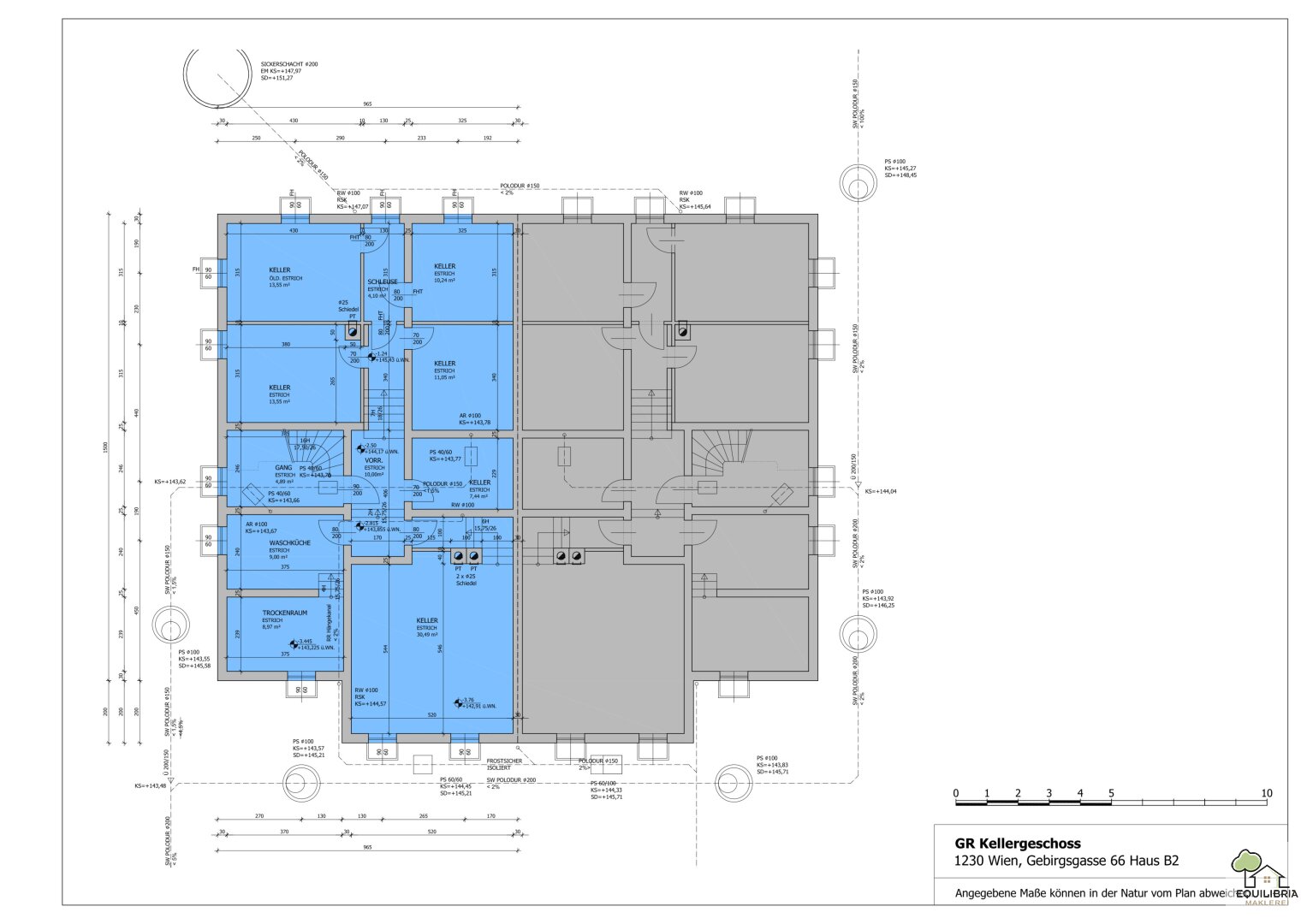 Der ca. 150m2 große Kellerbereich verfügt über viel Platz und Stauraum .