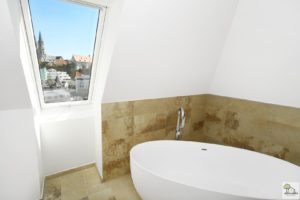 Das ehemalige Burgkino liegt direkt im Zentrum von Klosterneuburg, im Jugendstil errichtet, überragt es mit seiner imposanten Höhe die Umgebung bei weitem. Der zweigeschossige Dachboden besticht durch seinen Mittelsattelit, dem kleinen Balkon am Erker und den attraktiven ovalen Fenstern. Auf diesen vorhandenen 350 m² entstand außergewöhnlicher Wohnraum und wurde gerade fertiggestellt.