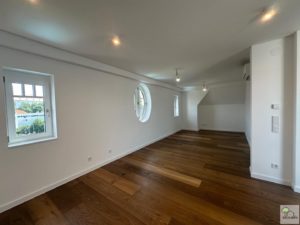 Das ehemalige Burgkino liegt direkt im Zentrum von Klosterneuburg, im Jugendstil errichtet, überragt es mit seiner imposanten Höhe die Umgebung bei Weitem. Der zweigeschossige Dachboden besticht durch seinen Mittelsattelit, dem kleinen Balkon am Erker und den attraktiven ovalen Fenstern. Auf diesen vorhandenen 350 m² entstand außergewöhnlicher Wohnraum und ist sofort beziehbar. Die Ausstattung ist in einer sehr hohen Qualität ausgeführt und bei der Wärme und Wassergewinnung wurde besonders auf Nachhaltigkeit geachtet.