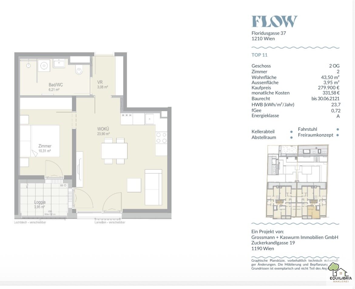 Da es wieder leichter wird, den Traum einer Eigentumswohnung zu erfüllen, dürfen wir Ihnen folgende Neubauwohnung anbieten. Jetzt zuschlagen , solange es noch genug Wohnungen gibt. Baurecht ! Ein Thema, das in der Immobilienbranche an Relevanz gewinnt. Lange galt der Erwerb von Grundstücken als alternativlos, doch steigende Bodenpreise und regulatorische Herausforderungen machen Baurechtsmodelle für Wohnungskäufer zunehmend attraktiv. Diese schon fertiggestellte im zweiten Stock liegende sehr hochwertige Wohnung steht ab sofort zum Verkauf . Mit ca. 43,50 m2 Wohnfläche, und einer ca.3,95 m2 großer Loggia bietet dieses Apartment eine sehr hohe Lebens- und Wohnqualität.