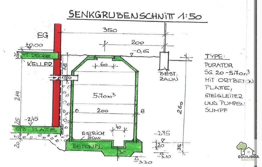 Von außen ist der Keller begehbar, welcher rd. 35 m2 hat und über folgende Einteilung verfügt: