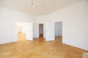 Vom zentralen Vorzimmer aus lassen sich 4 helle und größzügigen Zimmer jeweils getrennt begehen. Die beiden äußeren Zimmer eignen sich perfekt als Schlafzimmer. Das Eckzimmer mit Blick auf Domplatz und Herrenplatz sowie das daneben befindliche Hauptzimmer geben Ihnen ausreichend Flexibilität für ein gediegenes Wohnerlebnis. Wohn/Essbereich, getrennt Wohnen und Essen, eine Bibliothek mit Arbeitszimmer oder einfach ein drittes Schlafzimmer. Alles möglich. Eine großzügige Küche (Visualisierung ist beigefügt) mit Kitchen-Table, eine anschliessende Speis (die in anderen Wohnungen als Kabinett durchgeht), 2 Bäder und 1 WC runden diesen Altbau-Traum ab.