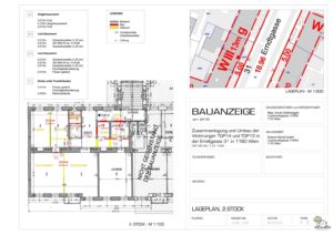 Im Jahr 2014 wurden die beiden Einheiten Top 14 und Top 15 zusammengelegt, wodurch eine weitläufige und gut nutzbare Raumaufteilung entstanden ist. Aktuell wird die Einheit als Büro genutzt, sie lässt sich jedoch mit geringem Adaptierungsaufwand wieder als Wohnung verwenden.