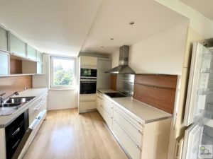 - im gesamten Wohnbereich Parkettböden - EWE-Designküche mit SIEMENS-Einbaugeräten, - Occhio Lampen in den Schlafräumen - Makilux Markise - Klimaanlagge (LG) im Wohnraum und dem oberen Schlafzimmer - Gas-Etagenheizung Ein Garagenplatz ist ebenfalls dabei. Außerdem ist ein großes Kellerabteil der Wohnung zugeordnet. Angeboten wird ein auf 5 Jahre befristetes Mietverhältnis mit einjährigem, mieterseitigen Kündigungsverzicht und Verlängerungsoption.