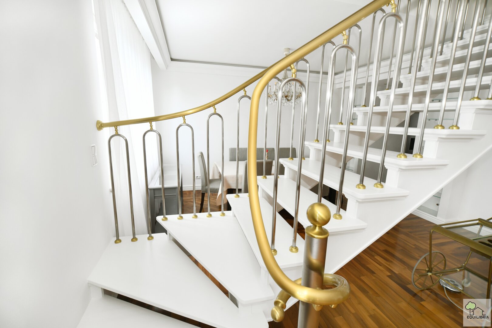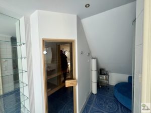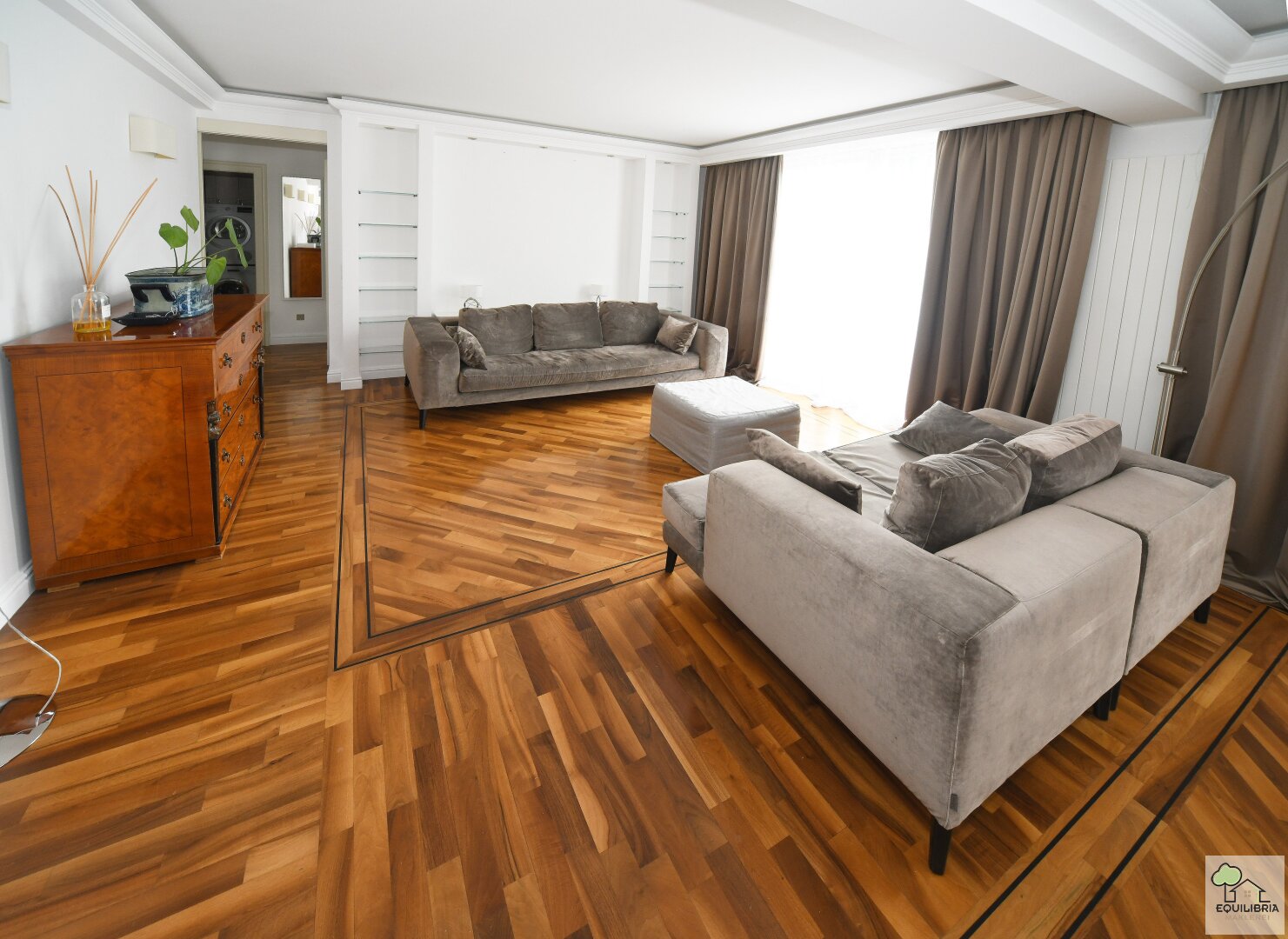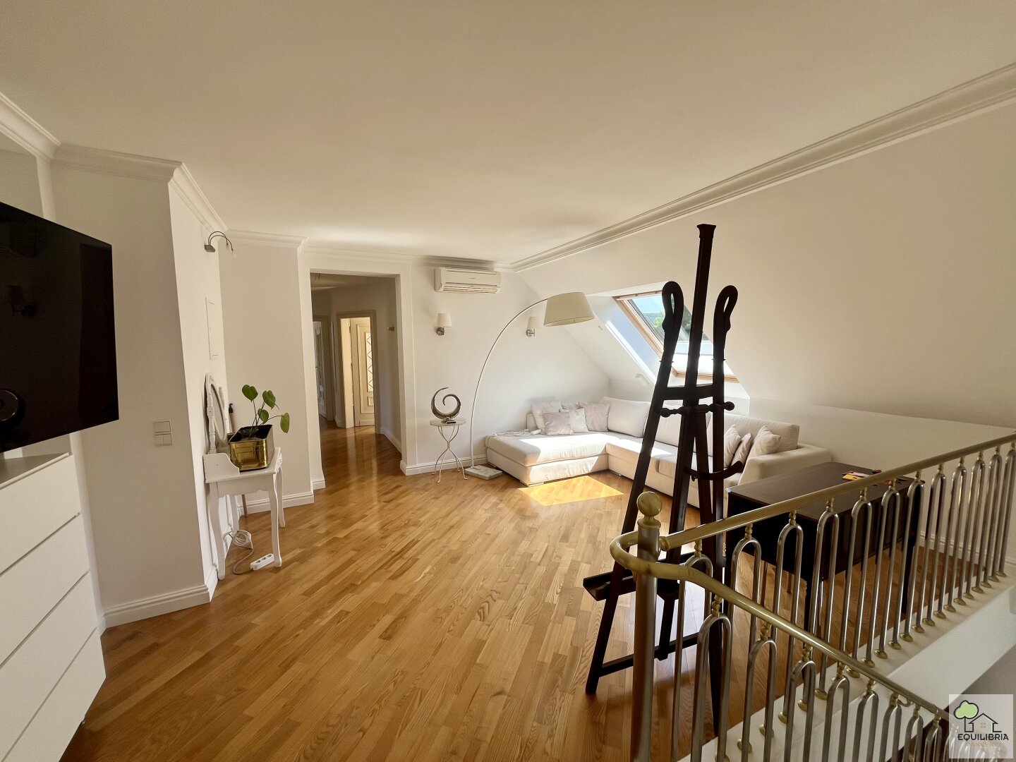 Die Wohnung umfasst fünf Zimmer, eine sehr hochwertige Küche, ein einladendes Wohnzimmer mit Essbereich und Kamin, das zum Verweilen einlädt. Drei stilvolle Badezimmer sowie insgesamt vier WCs sorgen für höchsten Wohnkomfort – eines der Badezimmer ist mit Sauna und Whirlpool ausgestattet und bietet Wellness auf höchstem Niveau.