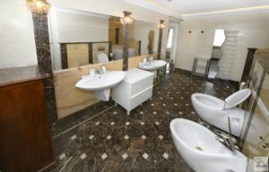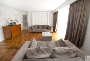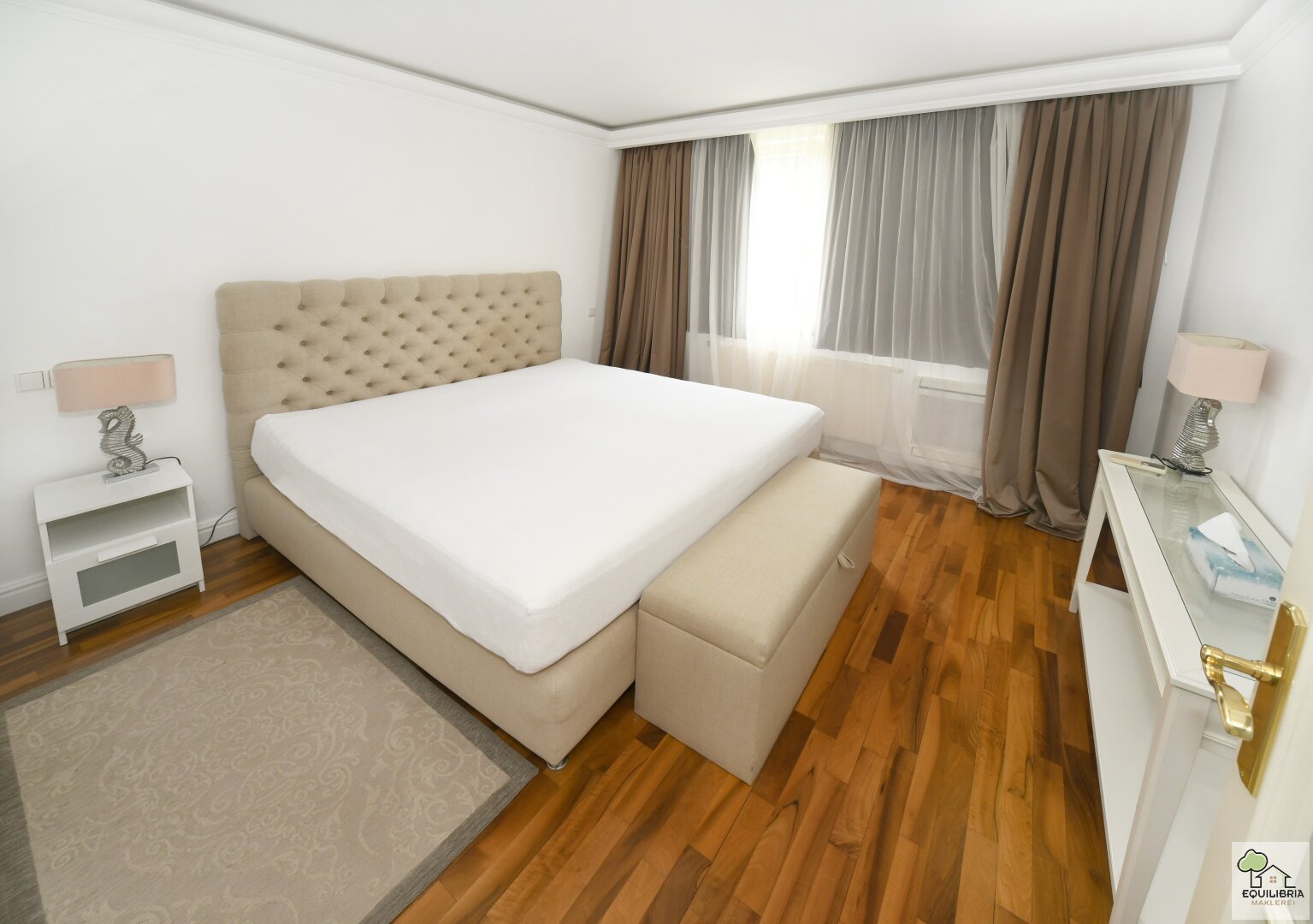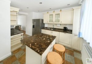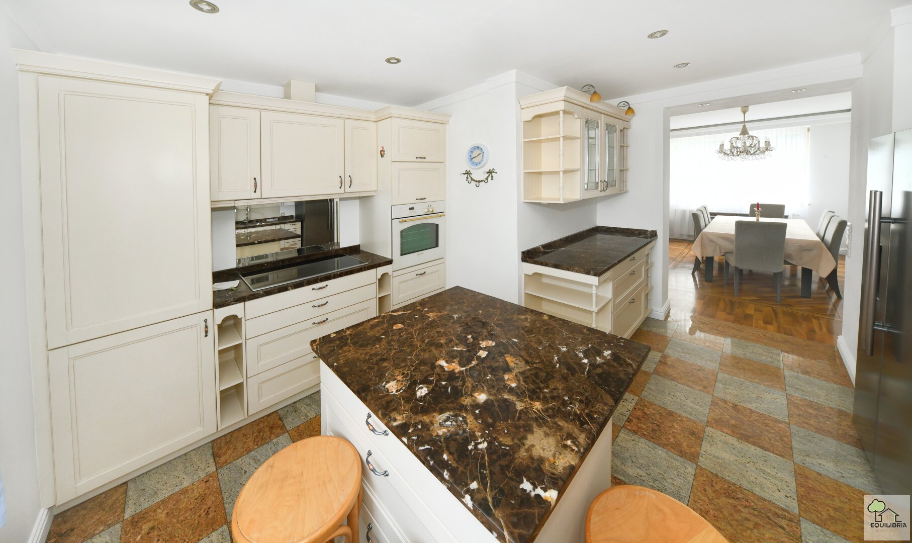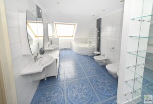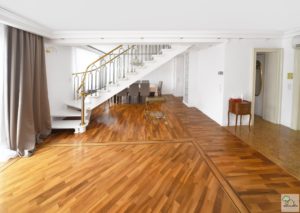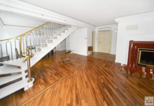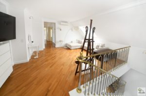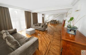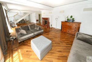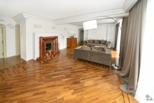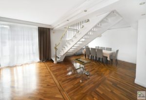 Die Wohnung umfasst fünf Zimmer, eine sehr hochwertige Küche, ein einladendes Wohnzimmer mit Essbereich und Kamin, das zum Verweilen einlädt. Drei stilvolle Badezimmer sowie insgesamt vier WCs sorgen für höchsten Wohnkomfort – eines der Badezimmer ist mit Sauna und Whirlpool ausgestattet und bietet Wellness auf höchstem Niveau.