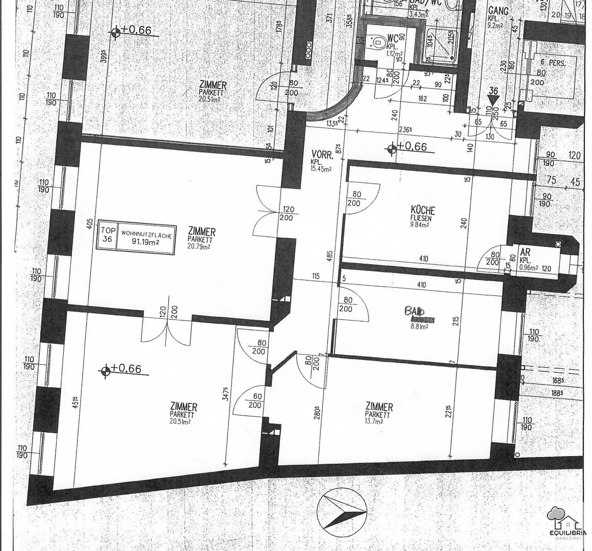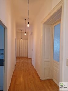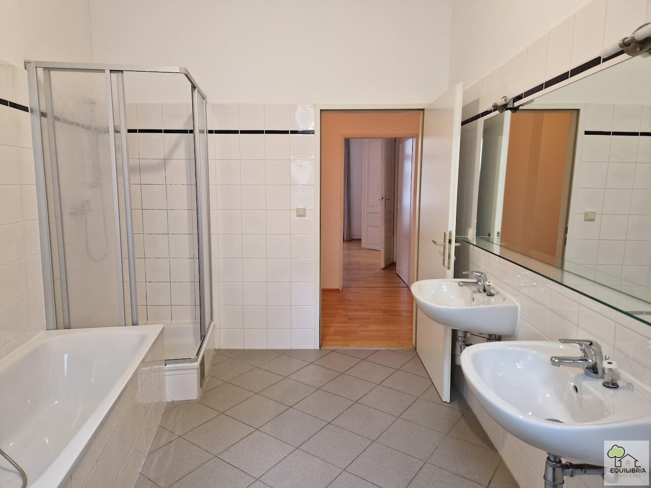 Die charakterstarke Wohnung ist mit Fliesen in den Nassräumen und mit Parkettboden in den Wohnräumen ausgestattet. Auch im Küchenbereich wurden idealerweise Fliesen verlegt. Die wunderschönen Doppelflügeltüren verleihen der Wohnung ein elegantes Gesamtbild.