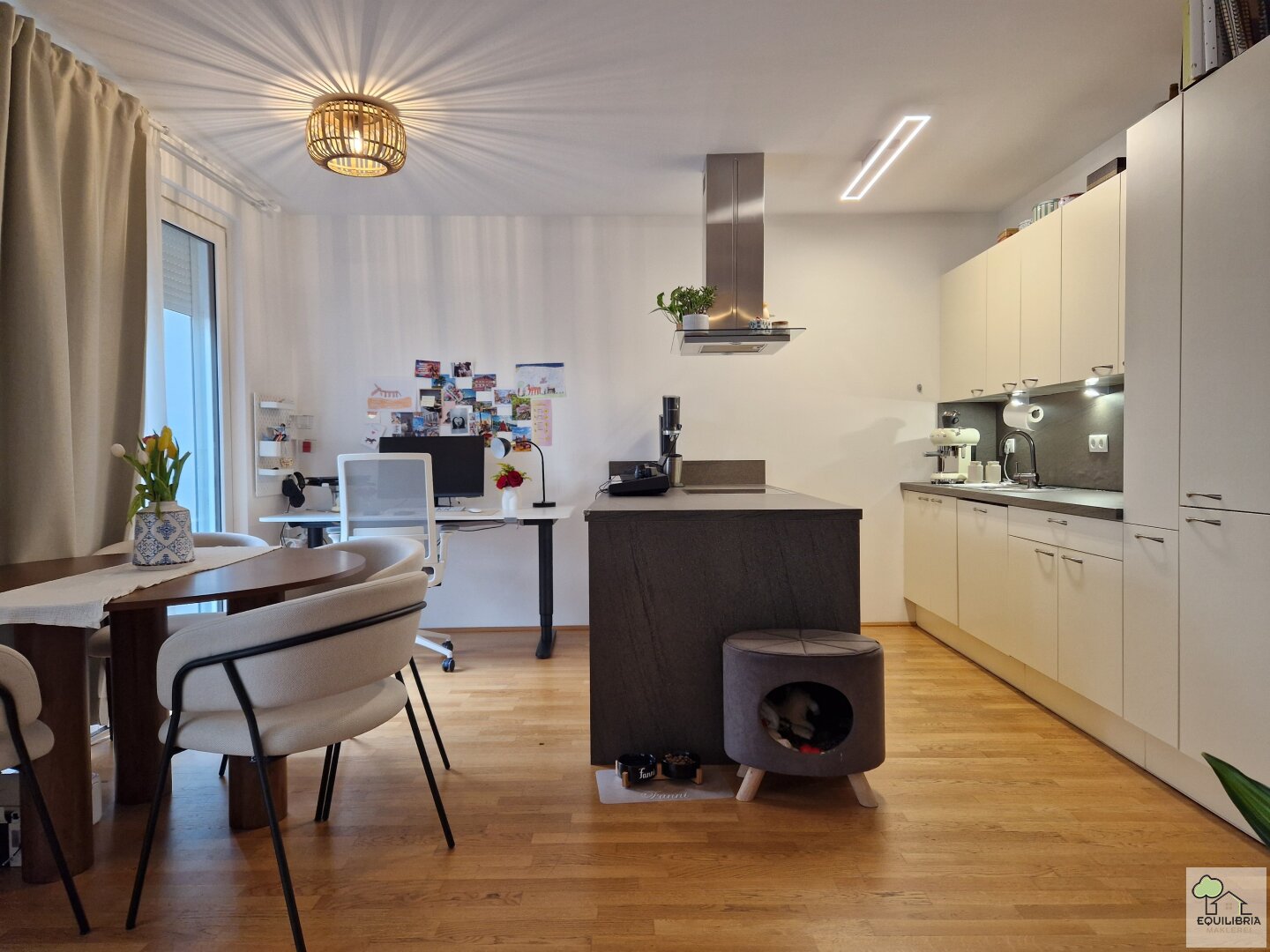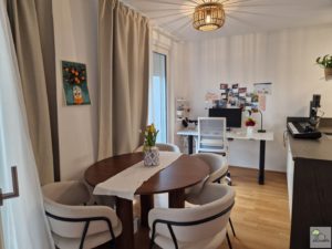 Die Wohnung ist noch bis Ende Juni vermietet und die aktuelle Mieterin hat die Wohnung sehr schön möbliert. Bei Bedarf können einige der Möbel übernommen werden. Besichtigungen nach Vereinbarung und nach Übermittlung eines vollständigen Mieterprofils.