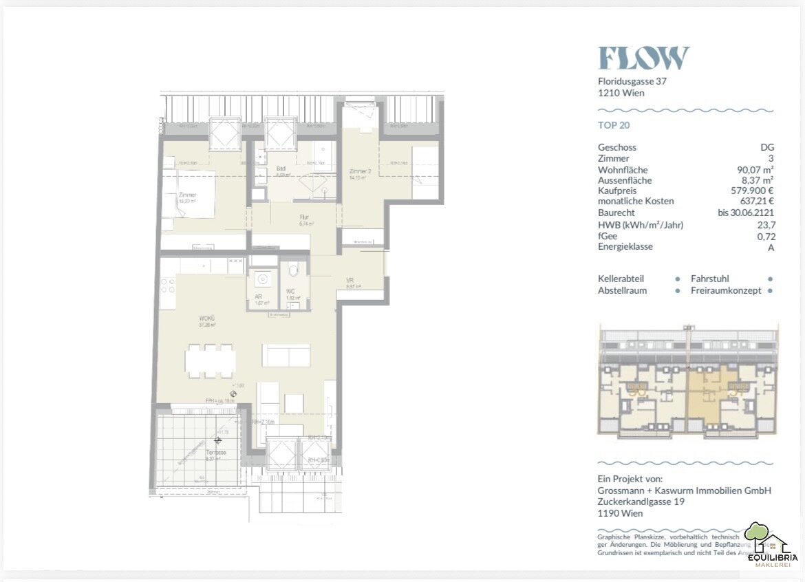 Da es wieder leichter wird, den Traum einer Eigentumswohnung zu erfüllen, dürfen wir Ihnen folgende Neubauwohnung anbieten. Jetzt zuschlagen , solange es noch genug Wohnungen gibt. Baurecht !: ein Thema, das in der Immobilienbranche an Relevanz gewinnt. Lange galt der Erwerb von Grundstücken als alternativlos, doch steigende Bodenpreise und regulatorische Herausforderungen machen Baurechtsmodelle für Entwickler und Investoren zunehmend attraktiv. Diese schon fertiggestellte im Dachgeschoss liegende sehr hochwertige Wohnung steht ab sofort zum Verkauf . Mit ca. 90,07m2 Wohnfläche, einer ca.8,37 m2 großer Terrasse bietet dieses Apartment eine sehr hohe Lebens- und Wohnqualität.