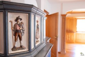 Der zentrale Wohnraum mit traumhafter Fernsicht und einem herrlichem Kachelofen vermitteln einem sofort das Gefühl, hier länger Verweilen zu wollen.