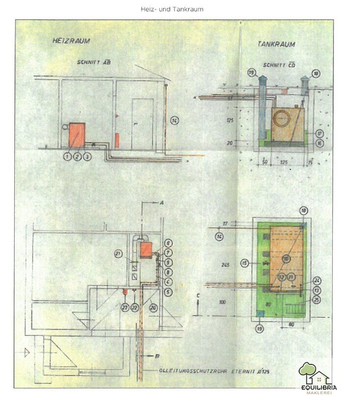 Das Haus selbst wird mit Öl beheizt (3 Öltanks mit jeweils 750 l Fassungsvermögen)