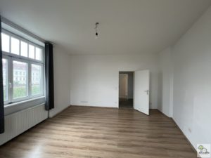 Über das geräumige Vorzimmer gelangt man in die verschiedenen Räume der Wohnung. Linker Hand befindet sich das großzügige Wohnzimmer, das durch seine Helligkeit und den klassischen Altbau-Charme überzeugt. Weiters steht ein praktischer Abstellraum zur Verfügung.