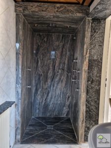 Im gesamten Haus wurde hochwertiger Stein/Marmor verarbeitet. Im Garten befindet sich zudem eine geräumige Gartenhütte, die ausreichend Platz für Gartengeräte/Gartenmöbel bietet.