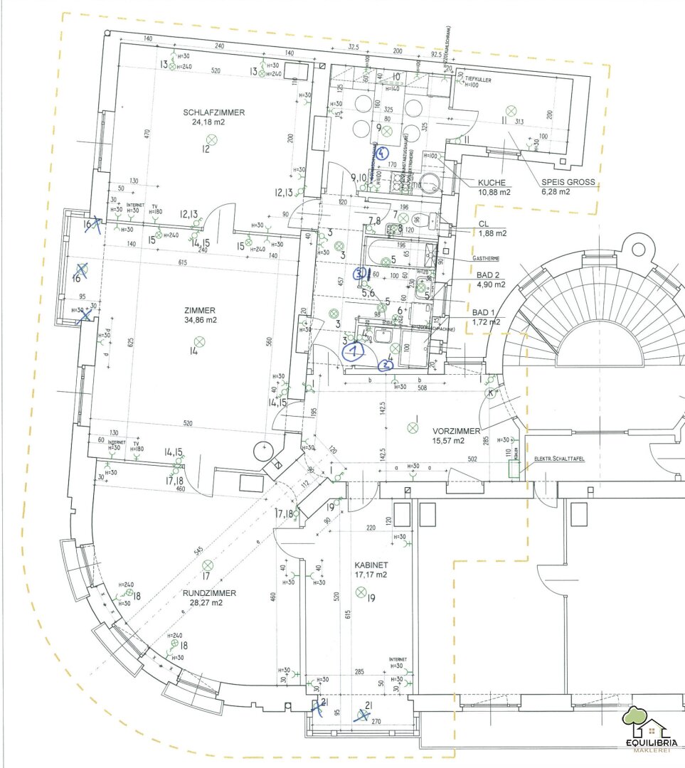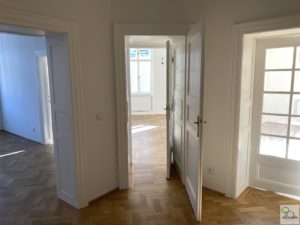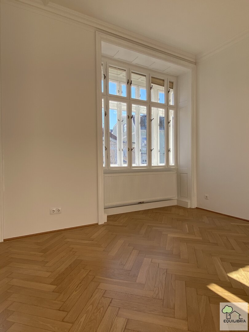 Vom zentralen Vorzimmer aus lassen sich 4 helle und größzügigen Zimmer jeweils getrennt begehen. Die beiden äußeren Zimmer eignen sich perfekt als Schlafzimmer. Das Eckzimmer mit Blick auf Domplatz und Herrenplatz sowie das daneben befindliche Hauptzimmer geben Ihnen ausreichend Flexibilität für ein gediegenes Wohnerlebnis. Wohn/Essbereich, getrennt Wohnen und Essen, eine Bibliothek mit Arbeitszimmer oder einfach ein drittes Schlafzimmer. Alles möglich. Eine großzügige Küche (Visualisierung ist beigefügt) mit Kitchen-Table, eine anschliessende Speis (die in anderen Wohnungen als Kabinett durchgeht), 2 Bäder und 1 WC runden diesen Altbau-Traum ab.
